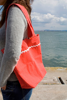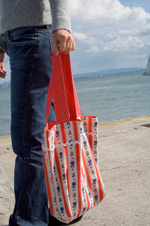 Gracinha ordered me a bag after we’ve been through the fabrics in my studio-to-be. I’ve made it reversible and with a bottom. Today we went to Delidelux for a brunch and we took some pictures of the bag by the river. (Thanks Tiago for your patience!)