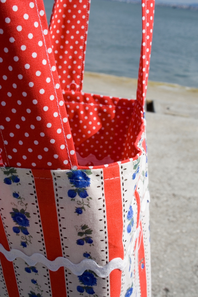 One side is a red fabric with small white polka dots, the other one is a “chita” from Alcobaça (a traditional Portuguese kind of fabric).