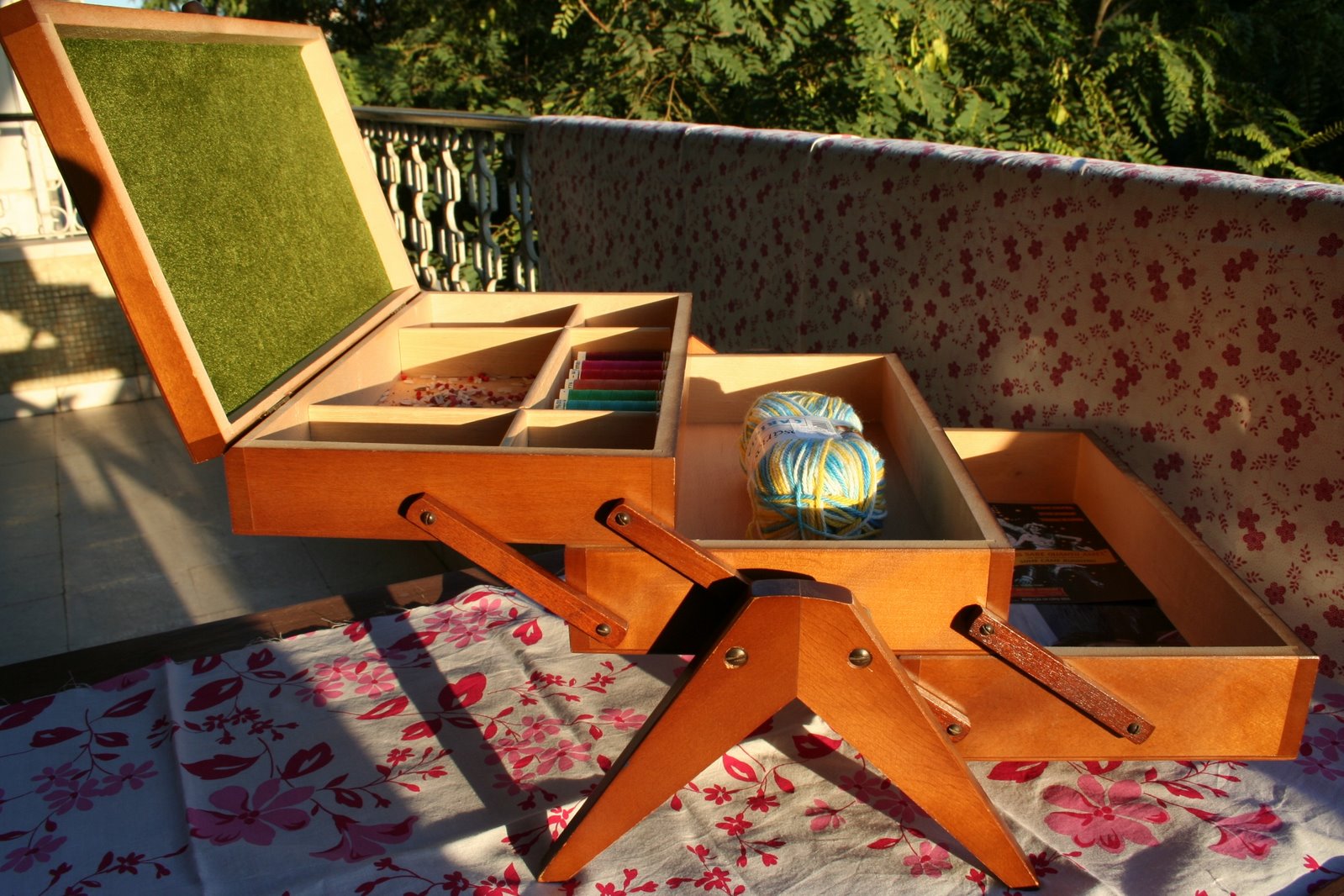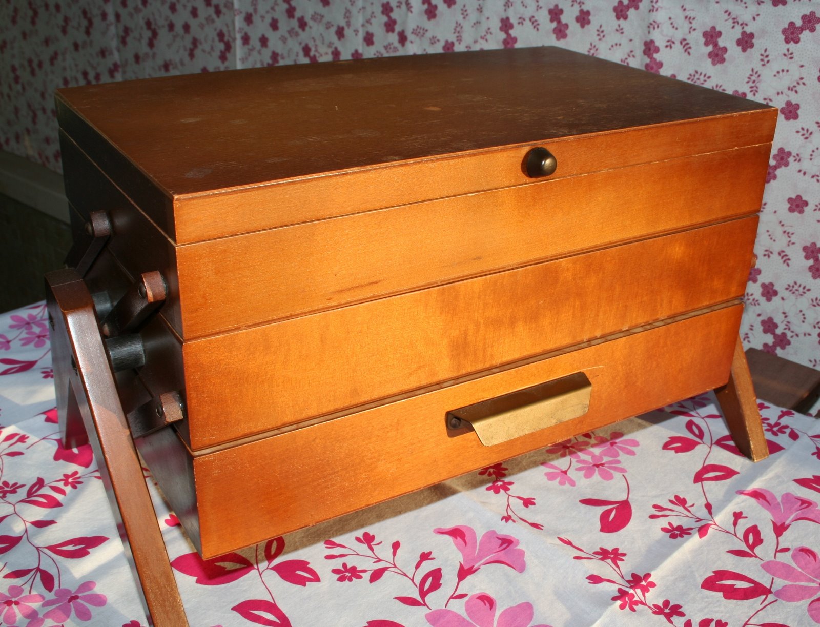 What a lovely sewing box, so handy with all the clever compartements for thread, buttons, needles and everything else one might possibly need while sewing.