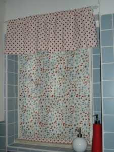 It’s strawberry season in my kitchen. After tasting the biological strawberries I bought at Biocoop, a bio supermarket near Lisbon, it was time to whip up a curtain for the sort of wannabe window we have above our kitchen sink. I especially love this fabric and I had been saving it for a special project for over a year — now I can look at it several times a day!