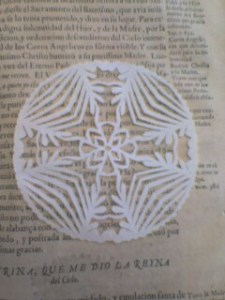This photo was taken with my mobile phone, hence the lack of quality. Yesterday I was at the Portuguese National Library and suddently I came across this papercutting among the pages of a Portuguese 17th century religious book. Minutes before I had found a very old red ribbon inside another book… This small discoveries amaze me: I start wondering about the hands that have already touched those books and how the lives of those people who read them could have been…