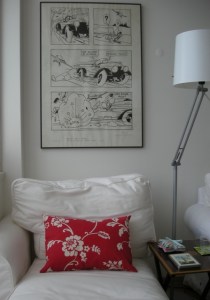 … and a square one (very creased due to its use) on the sofa.