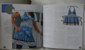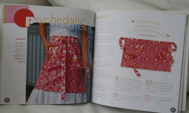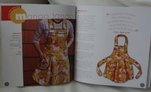 Ora cá estão, tal como prometido, imagens do livro A is for Apron: 25 Fresh & Flirty Designs. Tem graça porque logo nas primeiras páginas aparece um avental folclórico português, daqueles “para turista ver”. Vêem o preto, segundo a contar da esquerda? Lá está ele!