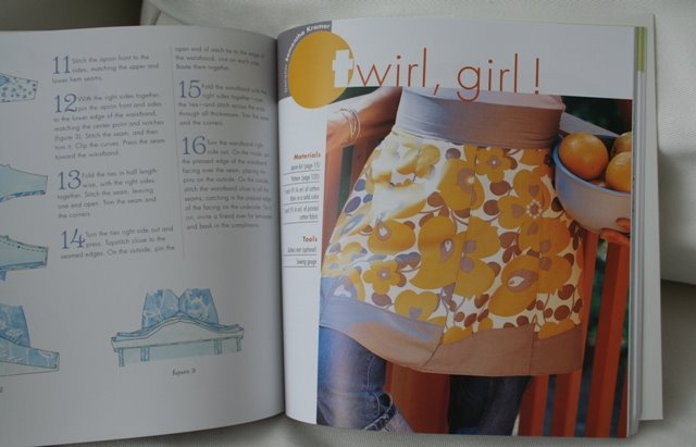 Like I promised, here are some pictures of my new book A is for Apron: 25 Fresh & Flirty Designs. It’s funny because there’s a “typical for tourists” Portuguese apron right in the beginning of the book. See that black apron, the 2nd one on the left?Voilà!