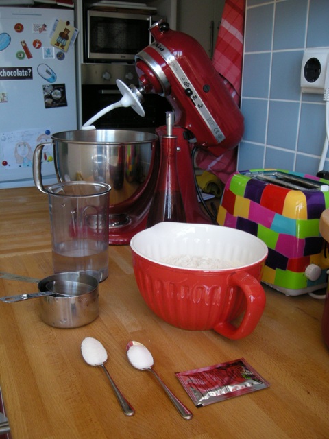A Jaana Maaria disse-me para ter cuidado, que fazer pão é viciante. Dois dias depois de experimentar os pães de água (já agora, a receita é esta), não resisti a experimentar fazer pitas. Usei esta receita e decidi documentar o processo. Não se assustem: este blog não se vai tornar um blog exclusivamente sobre pão!