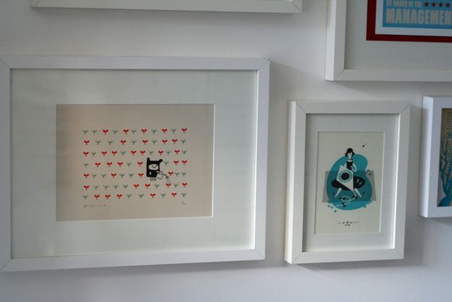 Alguém se lembra da minha “parede Etsy”? Apesar de aí haver quadros de outras proveniências, é assim que continuo a chamar à parede de que mais gosto em minha casa. Adoro ir comprando pequenos quadros de vez em quando e ter sempre sítio para os pendurar, assim como gosto do desalinhamento das gravuras, tornado coerente graças às molduras Ribba em branco do IKEA.