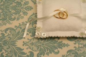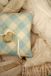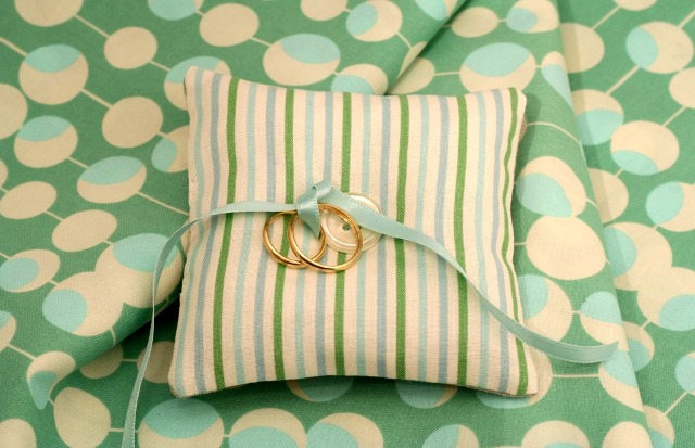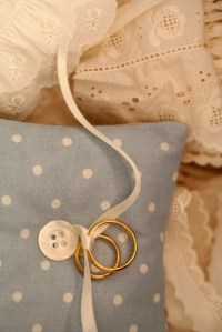The ring pillows are handmade by me, mesure approx. 11 x 11 cm (4.5”) and hold the wedding rings with a button and a piece of slim satin ribbon. I started by making eight… let’s see how it goes!