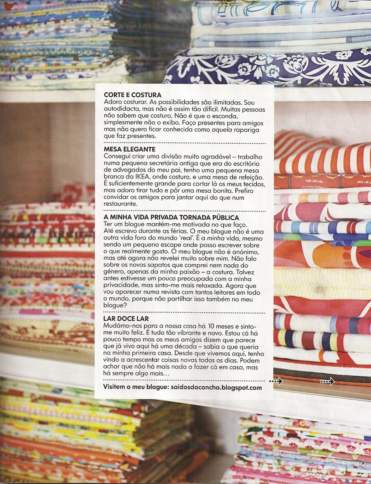 Muitos parabéns, esta publicação é bem merecida, a casa é linda, e os trabalhos também,super perfeitos, tudo arrumadinho, dá gosto visitar o blog, desde que o descobri não resisto dar uma espreitadela todos os dias!Continuação de bons trabalhos e Felicidades