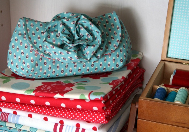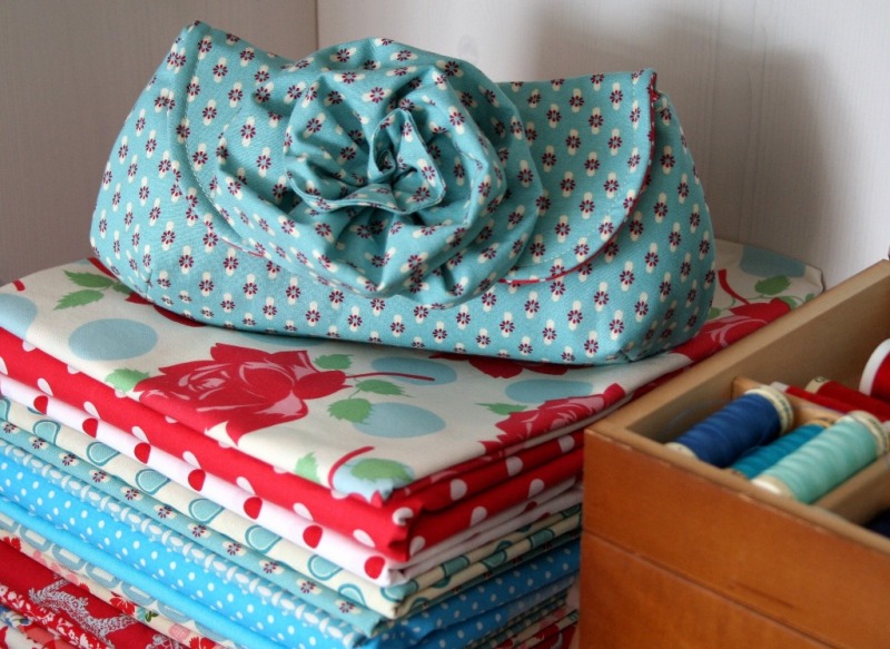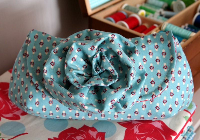 I got excited with your comments to yesterday’s clutch and I finally dedicated myself to making an order I have had for some time: Sofia‘s sister is getting married and she commissioned a clutch for that occasion. The fabric she picked has a small scale pattern so I thought a flower would lift it up. Sofia, I hope you like it!