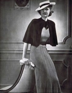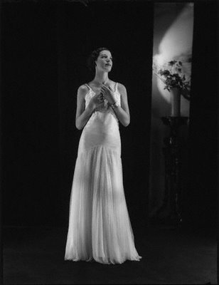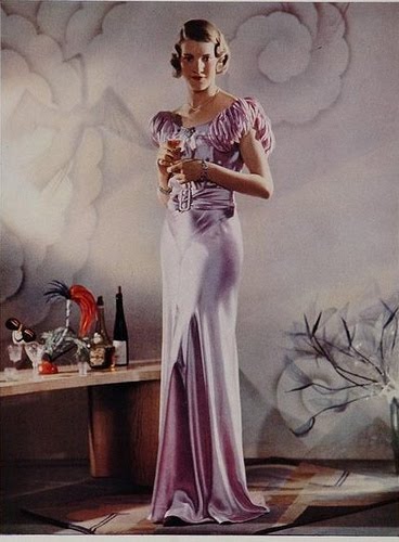 Inspired by Nancy Mitford‘s early novels (The Pursuit of Love and Love in a Cold Climate; there’s even a mini-series based on both of them), this month I’m going to feature 1930’s dresses. This decade was characterized by sleek silhouettes, lovely cleavages, frills and a return to the natural waisline and I find it much more interesting than 1920’s fashion. October = 1930’s here at Saídos da Concha!