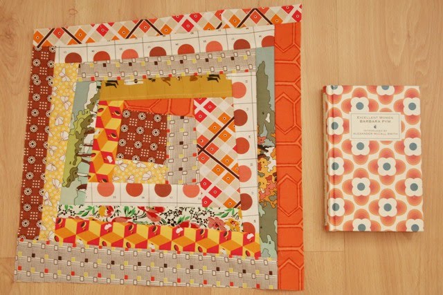 Mais um bloco em patchwork para o quilting bee deste ano! O Euro Bee é composto por doze europeias: todos os meses uma das participantes envia tecidos e sugestões às restantes onze, que, no final desse mês, lhe enviam um bloco pronto. Nessa altura, a primeira terá blocos suficientes para fazer um quilt top. Este é o mês da Rita, uma portuguesa que faz anos em Outubro (aliás, hoje!) e que quer fazer um quilt de Outono com estes tecidos. O pedido foi um wonky log cabin, um bloco cujas linhas são propositadamente tortas. Aqui está ele!