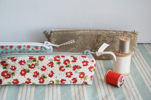 And what made me conquer my irrational zipper fear? Well, to begin with, a friend of mine has a pencil case she loves (the brown one in the back) and had asked me to make two similar ones, using some fabrics she’d brought from the USA. I liked how they turned out and decided to make some more, but this time using those fabrics I hadn’t had the courage to cut up until now… many of them are Japanese, some are American and there’s even a Dutch one. The pencil cases are now available in my shop, right in time for some Christmas shopping!