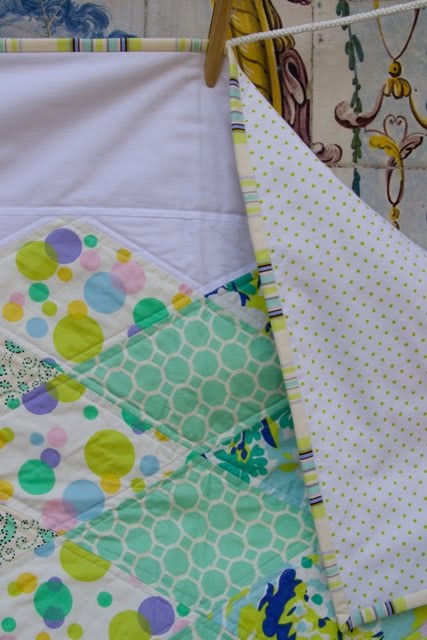 And so ends the week dedicated to the quilts my mother has made in the last few months. Today’s is a diamond quilt, inspired in this book by Kaffe Fassett. The fabrics, most of them Japanese, were brought from Purl.