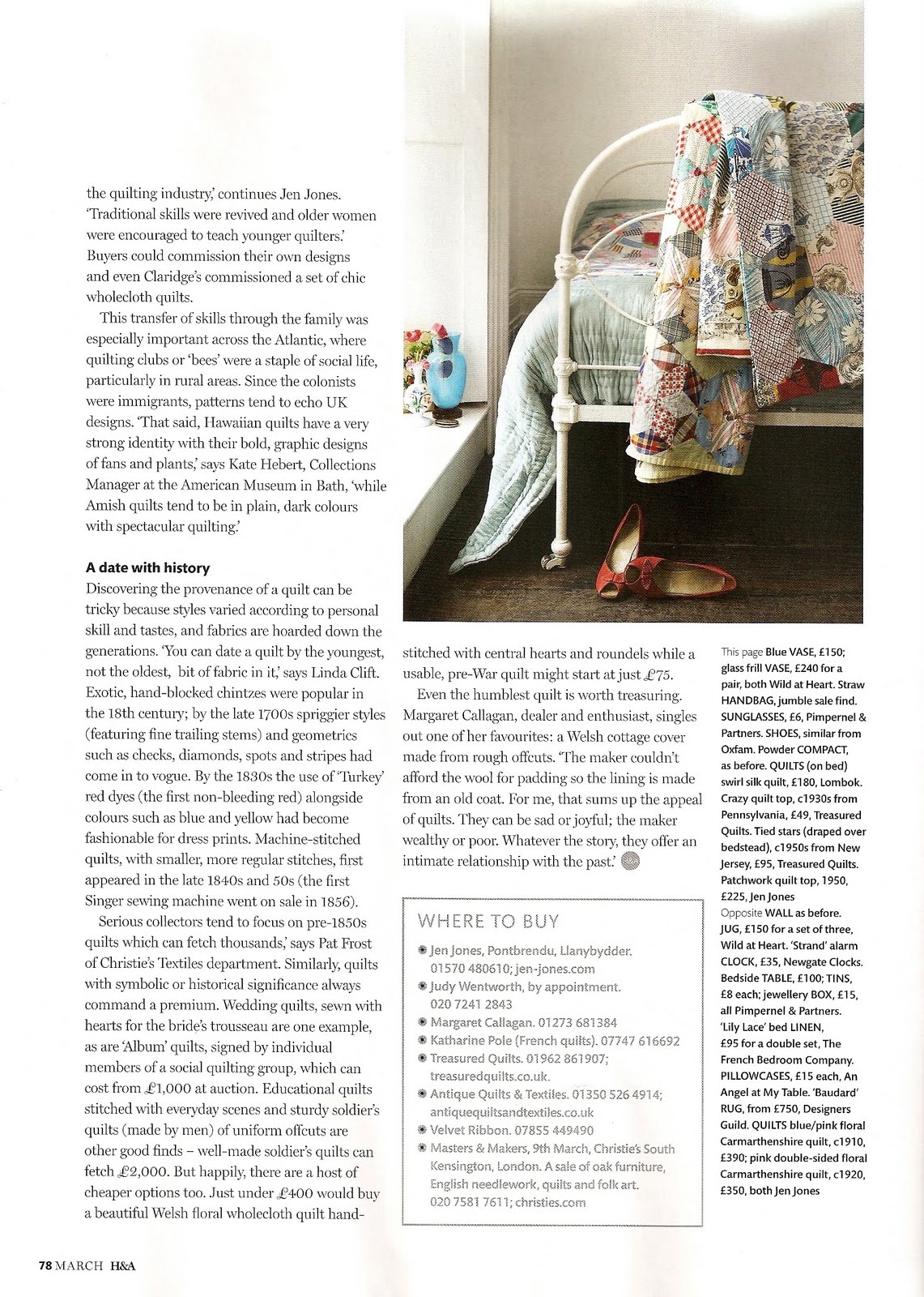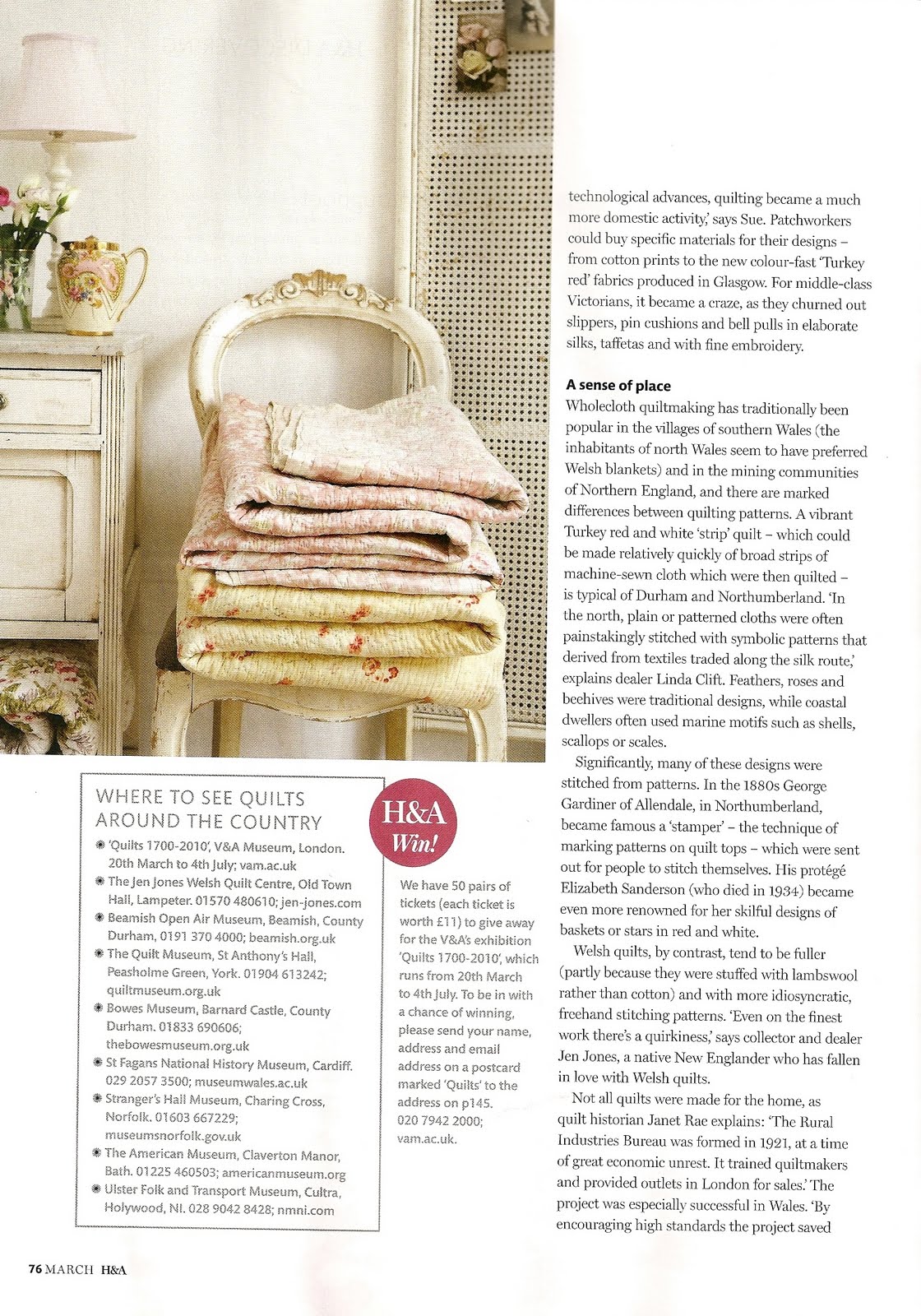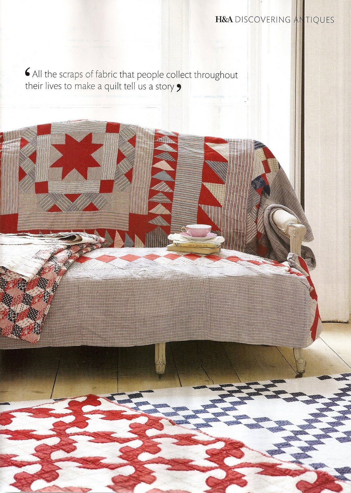 Que a BBC é uma organização extraordinária já toda a gente sabe. Mas, sei lá por que razão, sempre imaginei que a revista Homes & Antiques fosse aborrecida… bem, não podia estar mais enganada! A primeira coisa que me chamou a atenção foi o styling das fotografias, depois as casas escolhidas, a mistura de antigo e moderno… acho que a vou assinar! O tema de Março é quilts e claro que pensei imediatamente em mostrar algumas páginas aqui.