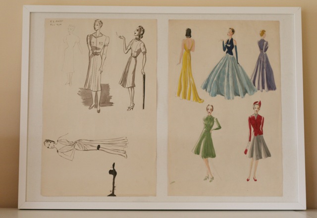 We bought these fashion sketches in an antique fair. The style caught my eye and one of the drawings has a great bonus: it’s signed and dated (M. B. Poxon, Nov. 1938: I googled it but nothing came up). I framed them with the help of good old IKEA against an unbleached muslin background.
