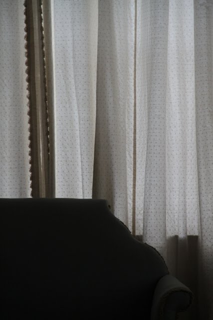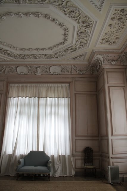 Outra das coisas de que gosto nas grandes casas inglesas é que, em termos de decoração, sabem quando muito é demasiado. No caso da galeria de Sudbury Hall, que tem estuques esplendorosos no tecto, as cortinas são brancas, de algodão fino, muito simples (fazem lembrar as tradicionais cortinas de cassa portuguesas). Não poderiam ser mais perfeitas.