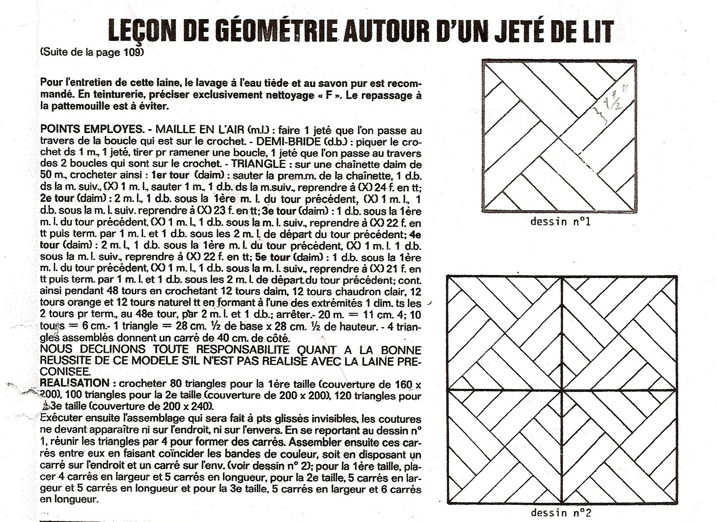 Numas arrumações de lãs e afins em casa da minha avó, a minha mãe e eu encontrámos, entre dezenas de novelos, uma colcha em crochet por terminar e a revista – uma Maison et Travaux de Setembro de 1975 – com as respectivas instruções.