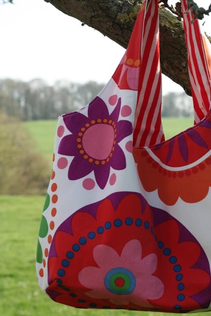 Amongst other things, I’ve been working on a beach bag pattern, something I’ve been meaning to do for over two years now. I like large bags with plenty of room to fit one’s towel, book, sunscreen, picnic, sweater… As I’m always afraid that my car/house keys will fall into the sand and disappear forever, I’ve  decided to add a swivel hook next to the bag’s inside pocket. After sewing the flower bag, I made a few alterations to the paper pattern and then made the striped bag. They’re both available in the shop and I promise there’ll be much more soon!