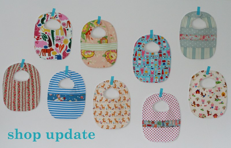 I’ve been making lots of bibs lately and I finally managed to update my shop. There’s something for everyone: some bibs are cheerful, some are softer, some are  in patchwork and some are in just one pattern. I like them all!