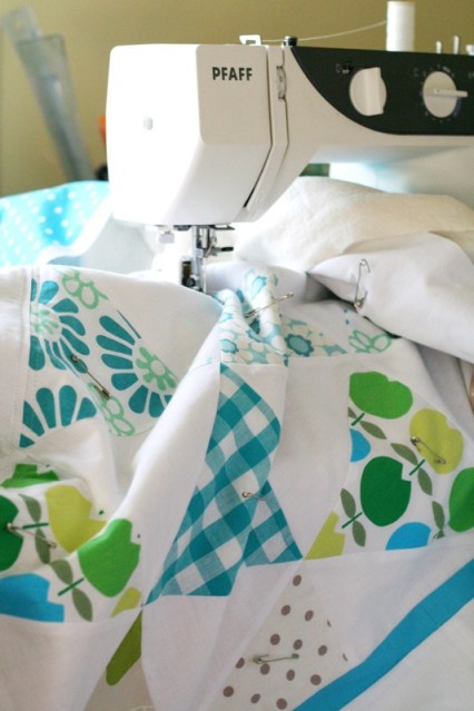 A minha máquina tem fases e agora está numa muito má. Estou cheia de problemas a acolchoar este quilt! Em projectos mais pequenos (como o saco que fiz há umas semanas) corre tudo bem.