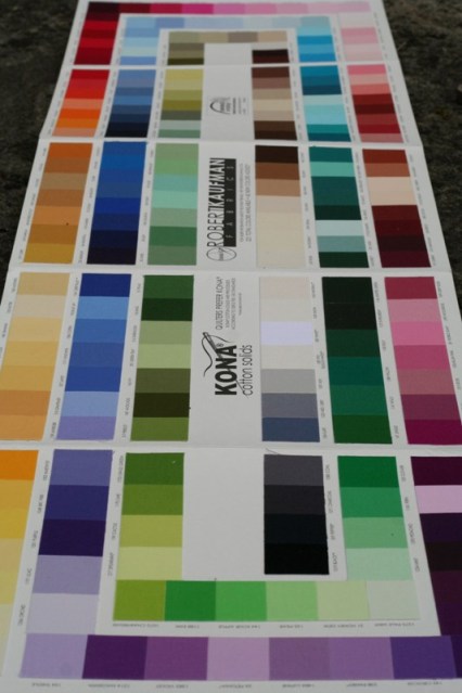 With so many fabulous patterns out there, we seldom think about buying plain/solid fabrics. But plain fabrics, especially when you combine them with one another, can be as or indeed more interesting than flowers, stripes or spots. My favourite ones are Kona Cotton Solids and, since I always buy them online, some years ago I ordered a colour card from here. It may seem an unnecessary investment but I really think it’s worth it as computer screens aren’t truly reliable in terms of colours.