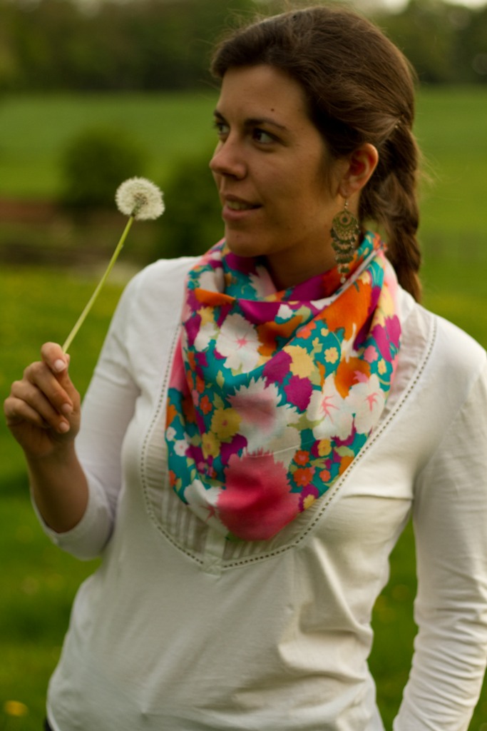 Uma écharpe para quem não tem medo da cor! Perfeita para o Verão, em voile de algodão, muito suave e com um bom cair. É quadrada e rematada com franja. Está disponível aqui.