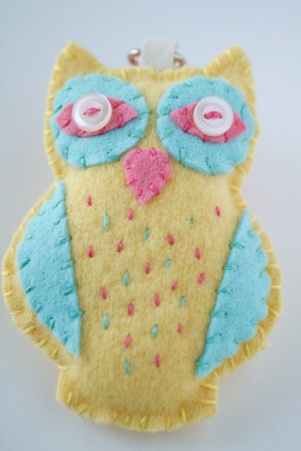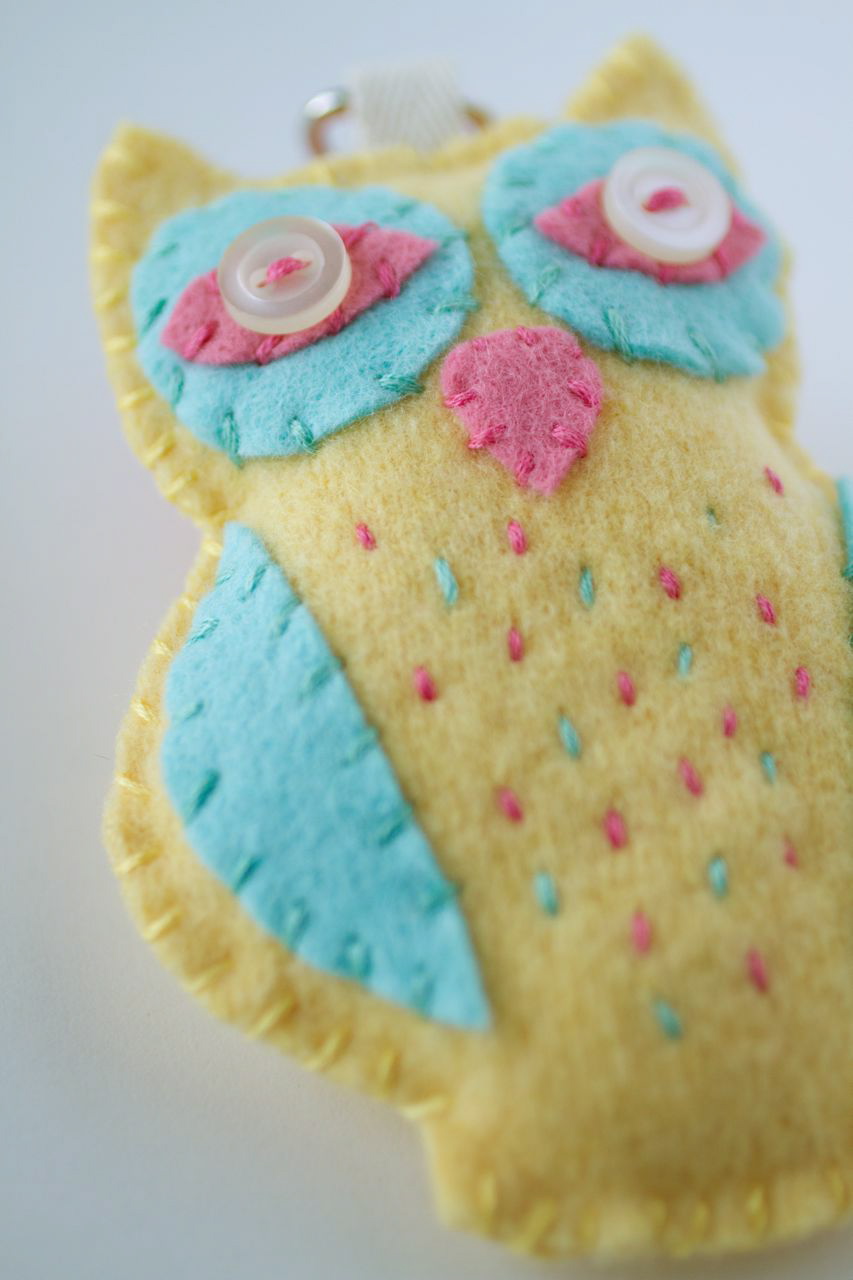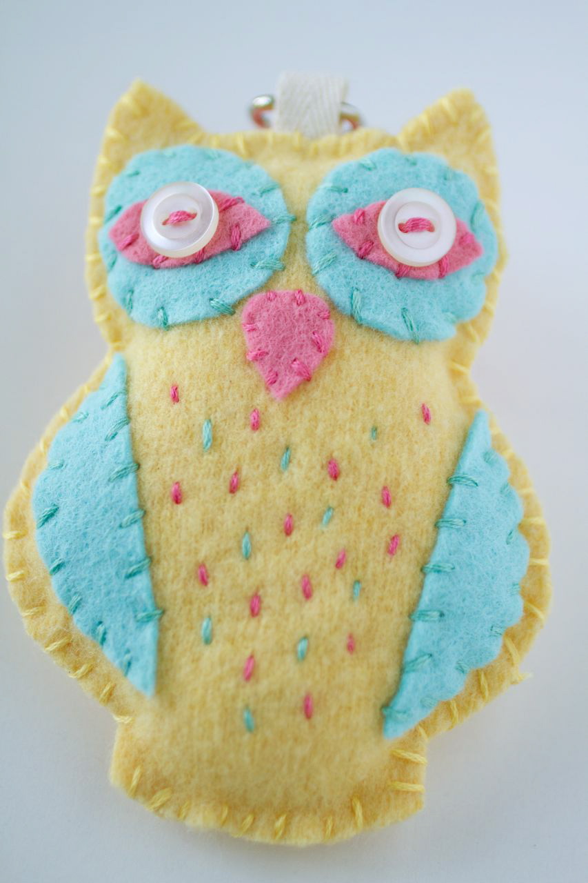 Have you ever made Anna Maria Horner’s felt owl? A friend of mine asked me to make her an owl key chain and I immediately thought of this pattern. I made the owl’s body in my favourite kind of felt: an old 100% wool sweater (this one was over 40 years old) washed at 90ºC.