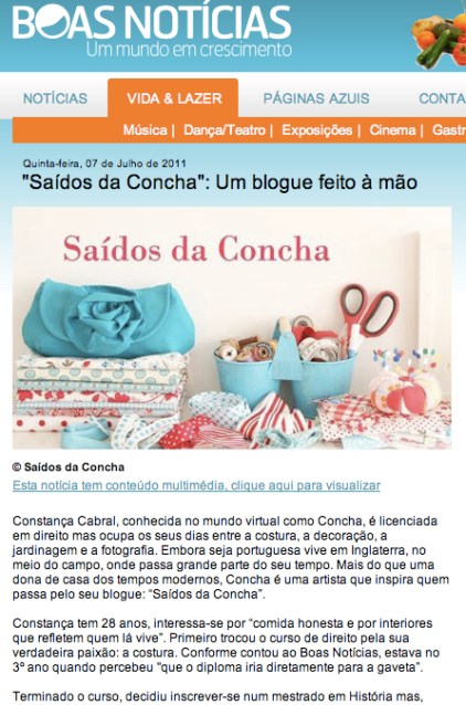 que orgulho!!! parabéns!! é sempre tão haver alguém que nos encontra e divulga o nosso trabalho, não é? um beijinho grande e uma óptima segunda-feira!