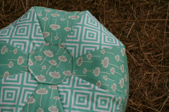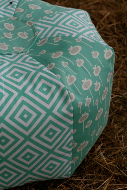 Every evening I’ve been hand-quilting my coin quilt. Each line takes me roughly one hour and what keeps me going is the constant replays of Poirot and Miss Marple on tv. As a way to fight monotony, yesterday I made this ottoman for our sitting room. It’s the smaller version of the Gum Drop Pillows by Amy Butler, one of my favourite patterns ever: easy, fast and so rewarding. I’ve made it several times in the past and I intend to make at least two more in the near future: a larger one also for the sitting room and one for the nursery.