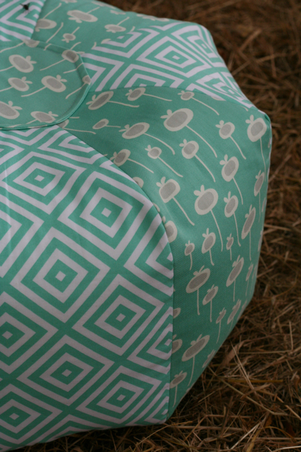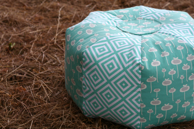 Todas as noites tenho acolchoado à mão o meu quilt. Cada linha demora cerca de uma hora e o que me vale é a televisão estar constantemente a passar episódios do Poirot e da Miss Marple. Para combater a monotonia, ontem à tarde fiz este pouf para a nossa sala. É a versão mais pequena dos Gum Drop Pillows da Amy Butler, um dos meus moldes preferidos de sempre: fácil, rápido e eficaz. Já o já fiz várias vezes ao longo dos anos e espero fazer pelo menos mais dois num futuro próximo: outro (maior) para a sala e um para o quarto do bebé.