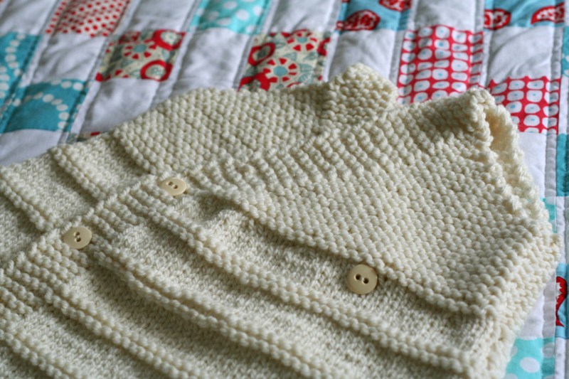 I’m incredibily lucky to have a mother who can and likes to knit. And a baby is the perfect exuse to look for yarns and patterns and to experiment. A while ago I received these two hand-knitted things by post: a blue shawl (I love the detail of the white blanket stitch) and a white sleeping bag. I hear there are more things waiting for me…