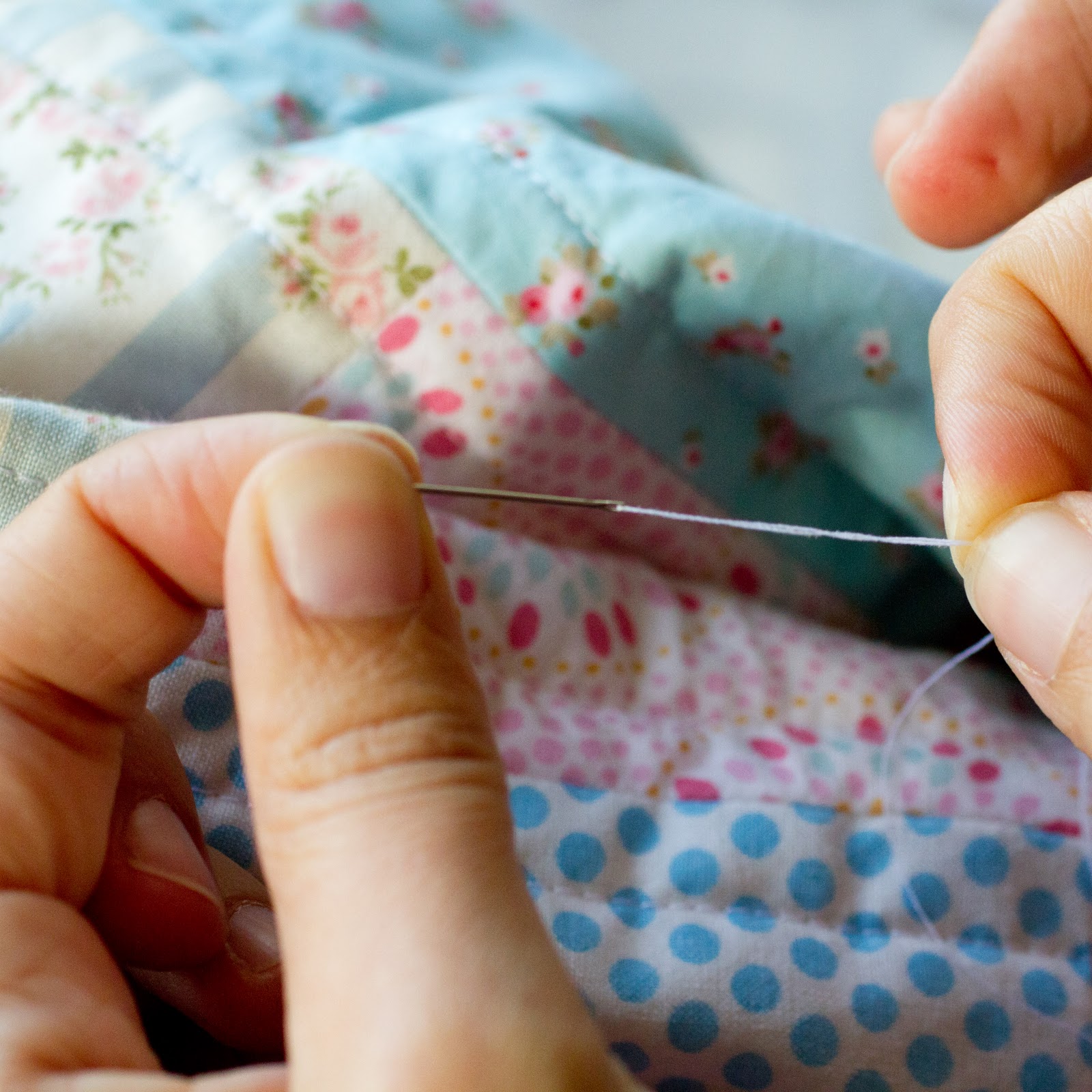 The instructions I’ve written for the quilt kits are almost like a mini quilting course. Today I’m going to show you a little extract — the part where I explain how to make a quilter’s knot. This type of knot is perfect not only for hand-quilting and hand-sewing the binding, but also for hand-sewing in general.