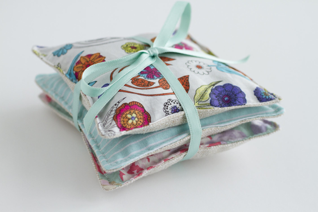 They look lovely! I love the colours you chose. Do you fill them entirely with Lavender or do you put some rice/lentils or something else in too? Always wondered.