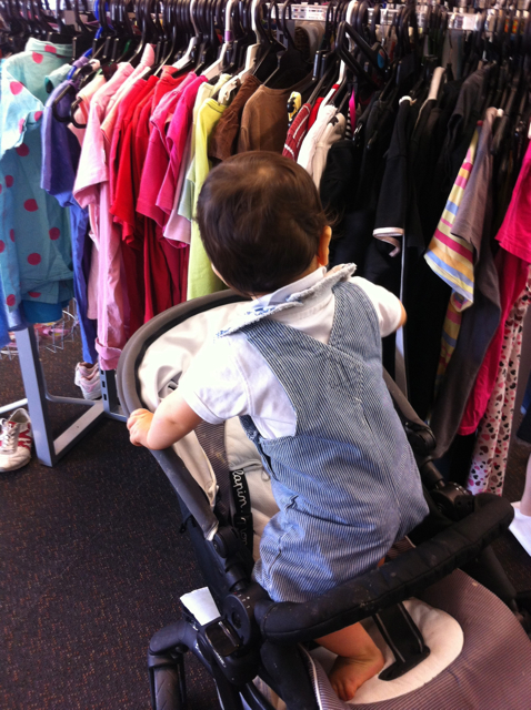 Just a few pictures snapped with my mobile phone to show you that there’s no shortage of charity shops in New Zealand (they’re called op shops here) and that Rodrigo was clearly impressed with their stock (in England he was a lot more nonchalant about them).