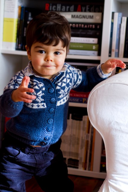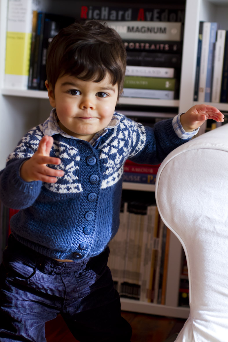 Para além das revistas francesas (algumas compradas há 30 anos) e americanas e dos livros da Marie Claire Idées (que têm modelos giríssimos mas com costuras), a minha mãe tem usado bastantes modelos do Ravelry. Vou mostrar-vos alguns dos casacos e camisolas feitos recentemente para o Rodrigo (todos top down e todos com instruções em inglês):