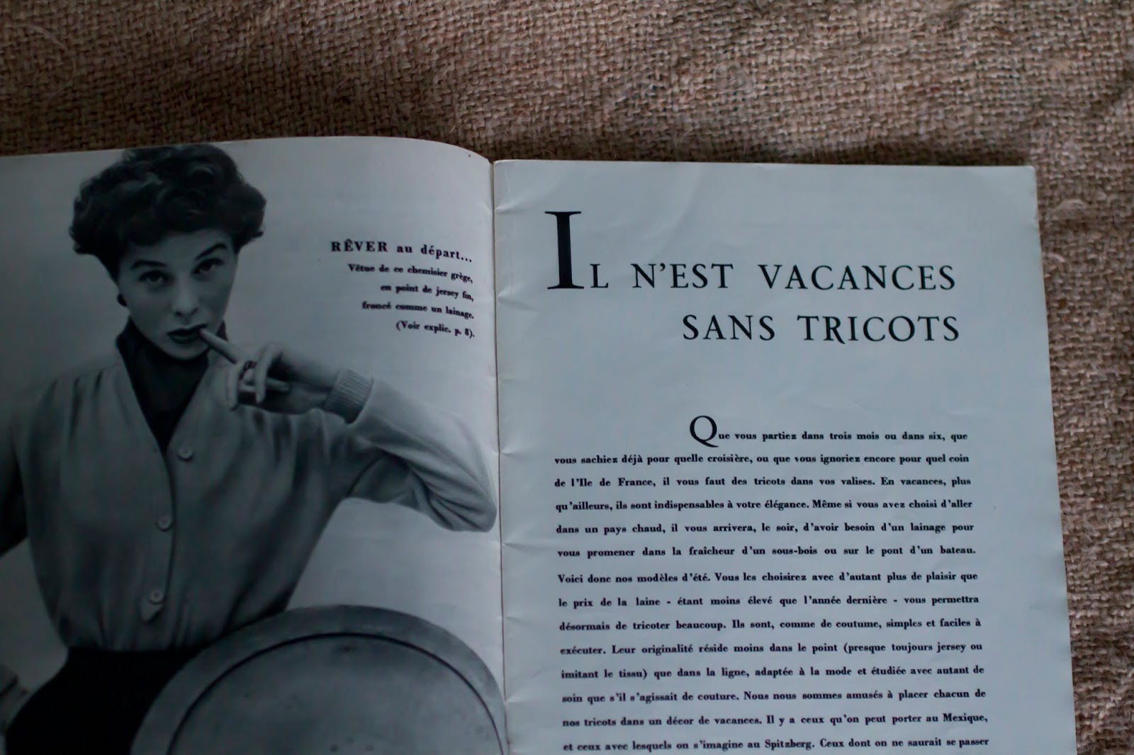 Há uns tempos recebi um pacote cheio de revistas antigas de costura e tricot vindas da Mariana. Não me poderiam ter dado um melhor presente: estou a deliciar-me com as fotografias, ilustrações e ideias — algumas completamente ultrapassadas, felizmente (espartilhos para crianças?), mas outras completamente actuais (modelos de toucas, casaquinhos e meias para bebés, por exemplo). Espero conseguir seguir algumas instruções… manter-vos-ei a par. Obrigada novamente, Mariana, adorei!