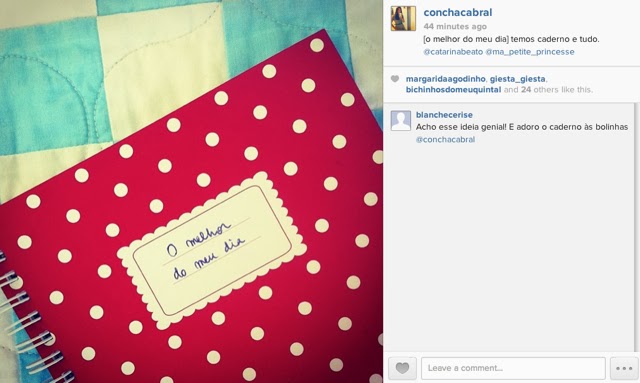 Eu aderi imediatamente. Para além de mostrar estes instantes no Instagram, arranjei um caderno onde, à noite, o Tiago e eu escrevemos os pontos altos dos nossos dias.