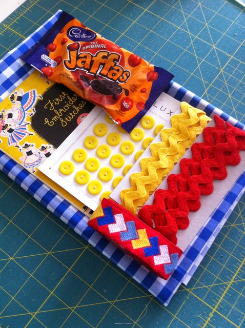Do you remember Mailbox Surprise, the international fabric exchange I took part in? Well I had to send a package to Tara, who lives in the USA. I sent her a metre of gingham fabric, a vintage embroidery booklet, rick-rack in two colours, a piece of vintage Portuguese ribbon, a card of vintage Portuguese buttons and a packet of Jaffas (NZ chocolate). Take a look here to see what she’s made with the fabric!