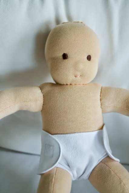 In my next post about the doll I’ll tell you all about the wig, the mattress, the patchwork quilt and the clothes (well, I haven’t actually sewn any clothes yet… let’s just assume I’ll find the time to make them!).