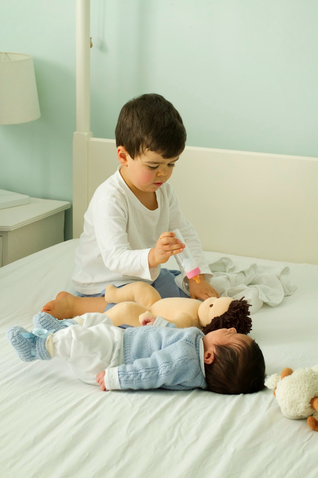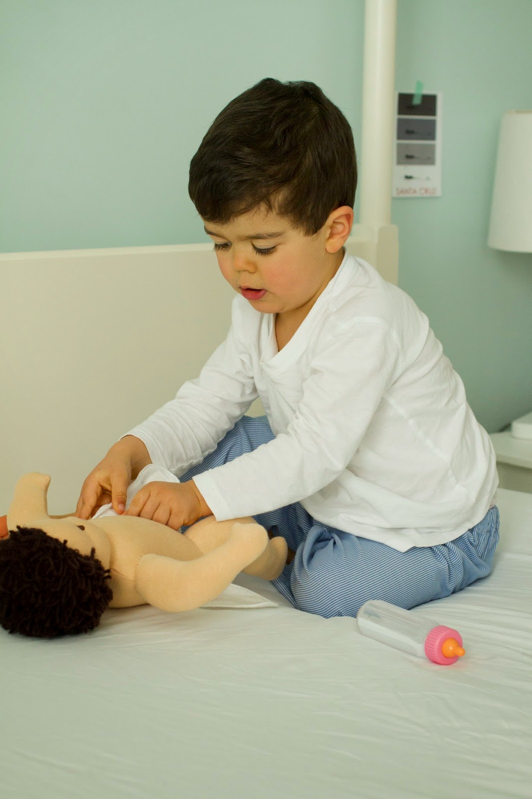 During Pedro’s first month, Rodrigo didn’t pay any attention to the doll. But this past weekend he suddenly took an interest and the doll was fed, changed, cuddled and pushed around the house. It’s so funny to watch him mimic what he sees us doing with Pedro.
