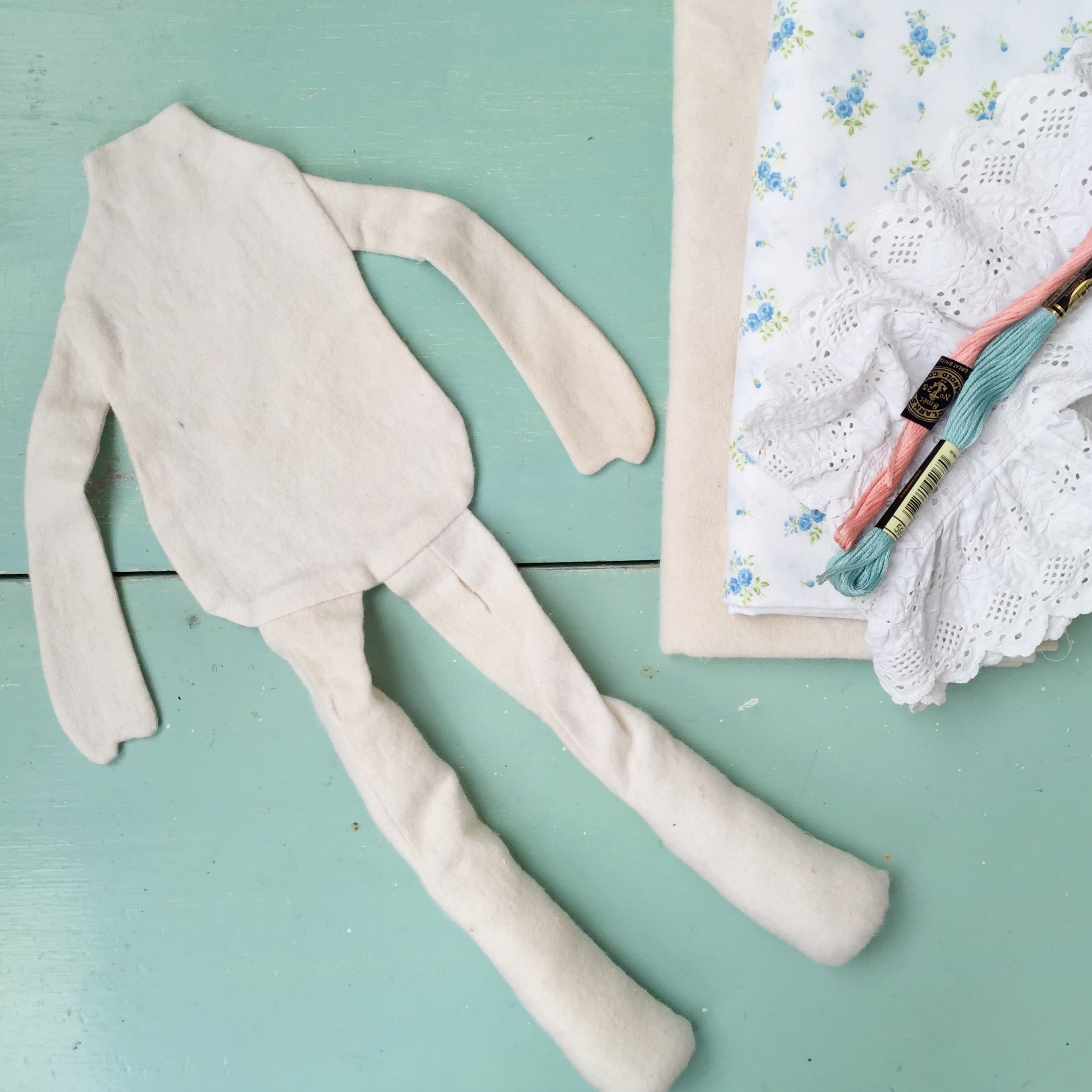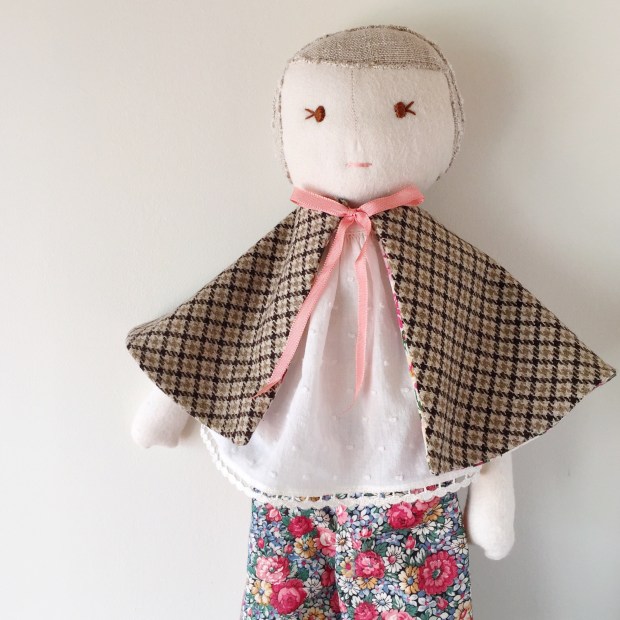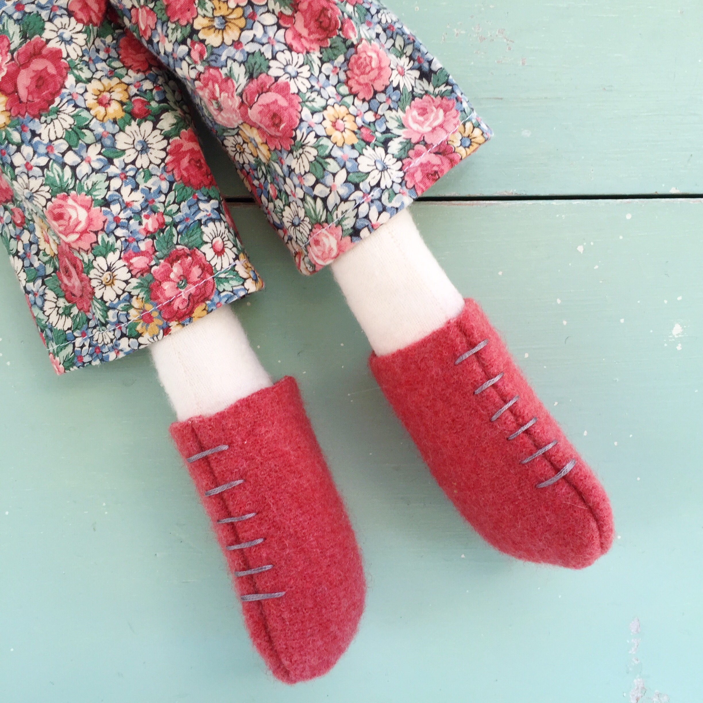 I spent all of my free time in May making this doll. I had started it back in 2012 (at the time, I cut two dolls and only finished one — remember her?) and last month I felt the sudden urge to finish it. She’s meant for a girl who was 2 years old then and is now in primary school, having gained two sisters along the way. The idea of making a doll and her wardrobe for three sisters quickly developed into an obsession for me. I borrowed books from the library, I finally read all those old books I’ve been buying over the years, I went to sleep and woke up thinking about dolls, I reminisced about own childhood dolls, their clothes and the way I used to play with them. Funnily enough, I thought mostly about the dolls that I used to play with at my grandmother’s: I remember a freckled, red-haired one that had a yellow raincoat and a matching hat, as well as a ballerina outfit, and a particular pair of white doll shoes also came to mind.