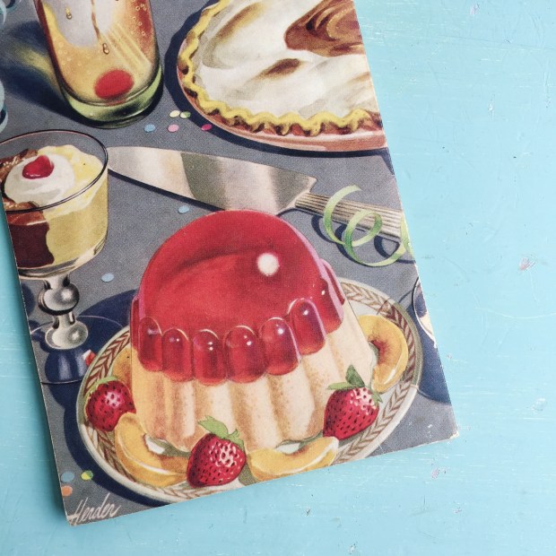 This past weekend I was invited to a retro birthday party. The birthday lady loves all things vintage (she’s a keen second-hand shopper and she’s got an eagle eye to spot things that no-one else can see). Each guest was required to bring along a few retro dishes — the theme was 70s-80s. This was such a cool idea! I immediately  thought of my collection of vintage cookery booklets — you know, the ones that were issued by manufacturers of baking powder, margarine, tinned fish… My booklets are mainly from the 50s and 60s (and I do have a couple from the 20s — I must share those illustrations with you some day) but I wasn’t too bothered by that small detail. What’s a mere twenty years in the great scheme of retro cooking?