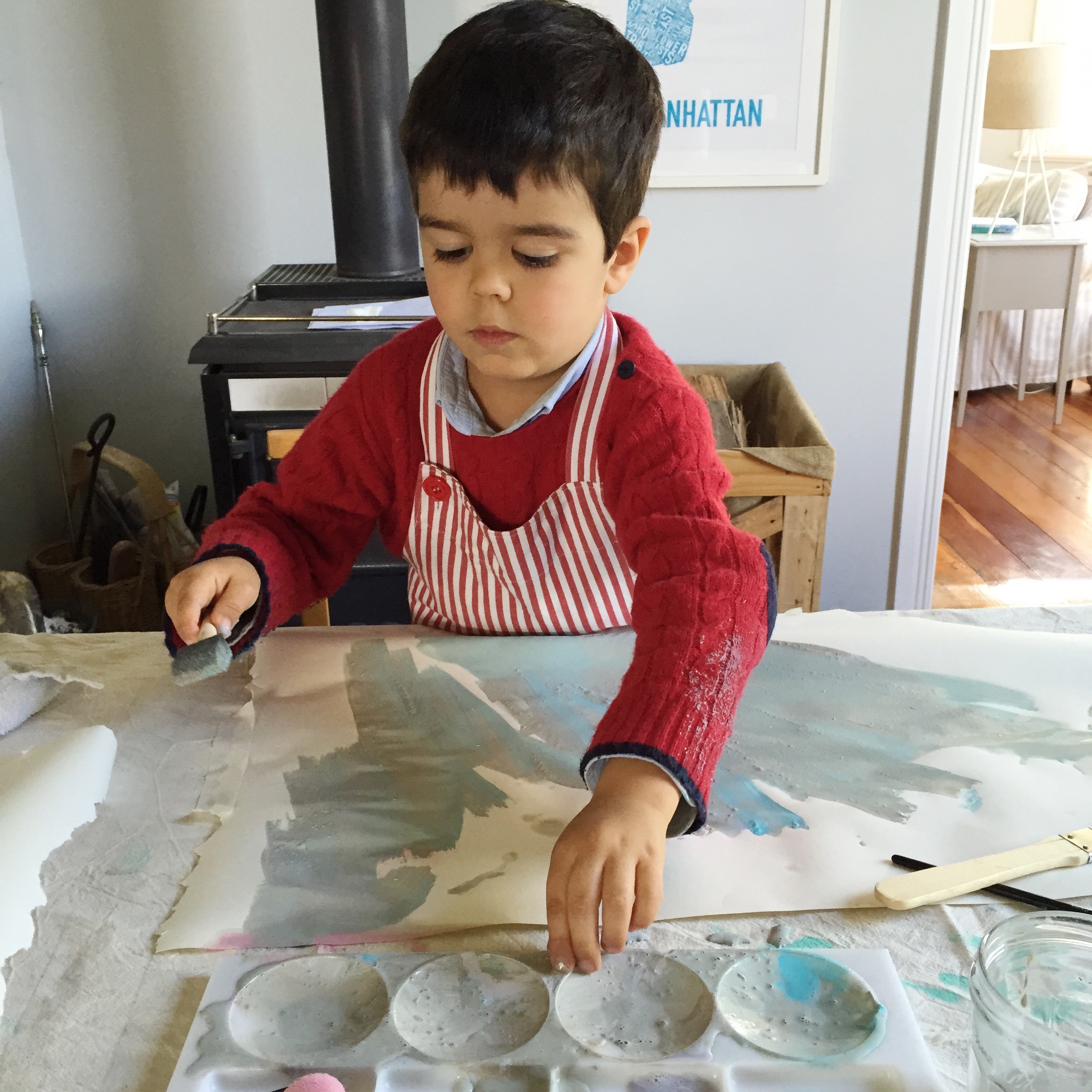 In my usual dreams of grandeur (I’ve already told you about them — when I start longing for “the aunts”, the crammed attics and outbuildings that never quite existed) I thought I’d use that wall to display a lovely old embroidered bedspread or a rug or a precious piece of antique fabric… however, due to the lack of a dignified “textile piece”, I decided to just make something with my own hands.