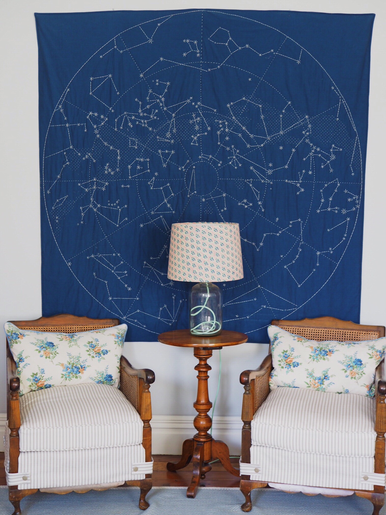 I’d been eyeing Haptic Lab’s map-quilts for a while and one day I discovered that not only do they sell DIY kits, they had the perfect thing for me: a template of the constellations of the Southern Hemisphere sky to embroider onto a 72 x 72 in. quilt (180 x 180 cm).