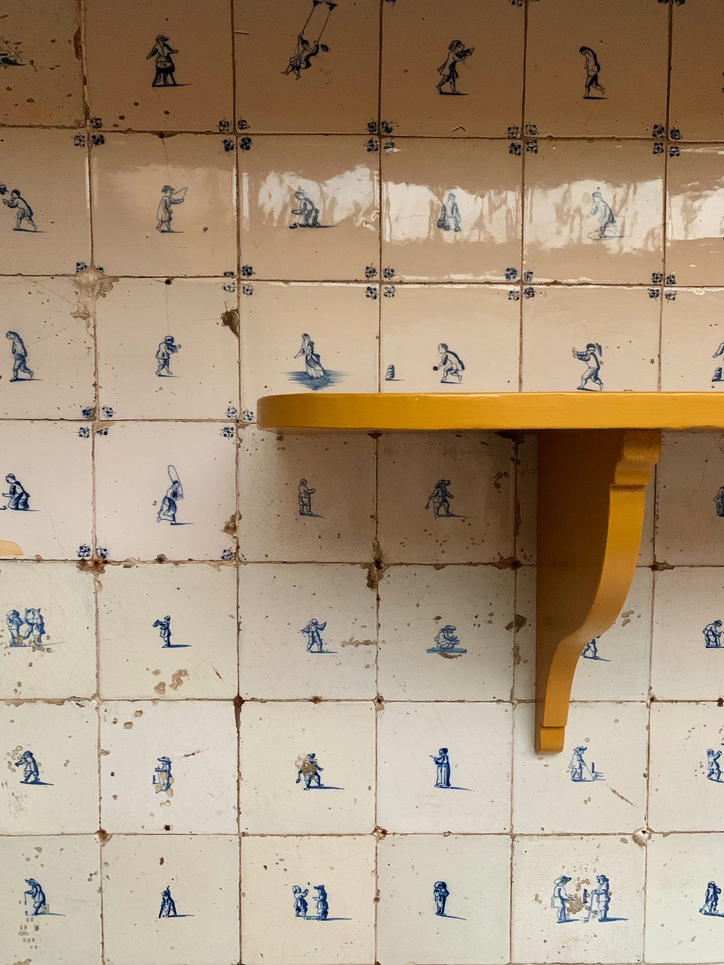 Nos meus habituais devaneios de grandeza (já os conhecem — quando começo a pensar “nas tias”, nos sótãos e nos armazéns que nunca existiram) imaginei que poderia lá pendurar uma colcha de Viana (antiga e de casal, pois claro), ou um tapete de Arraiolos, ou quem sabe um tecido antigo… mas, dada a ausência de uma “peça têxtil” com a dignidade e antiguidade necessárias, resolvi fazer eu algo com as minhas próprias mãos.