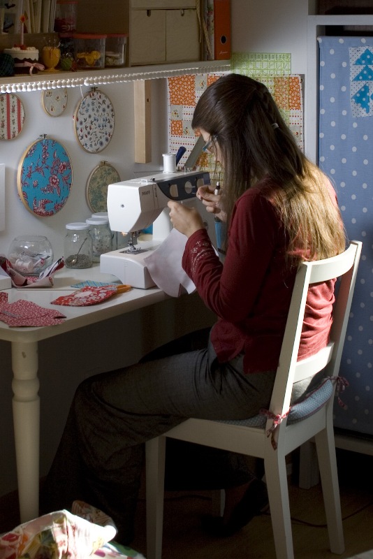 I know there are a lot of people out there who think painting wood is a crime, but neither Tiago nor I feel that way. Above all, we believe that the objects that surrond us must be functional and pleasing to our eyes. So we got our hands on some sand paper and some brushes and we started working on it. After four, f-o-u-r weekends in a row — with some other activities in between so that we wouldn’t go mad –, the cupboard is now in the office/sewing-/dining room. And we are so relieved.