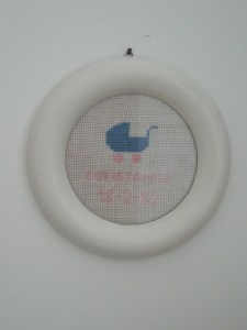 A outra esteve sempre nos meus quartos e emoldura um bordado que a minha mãe fez quando nasci.
