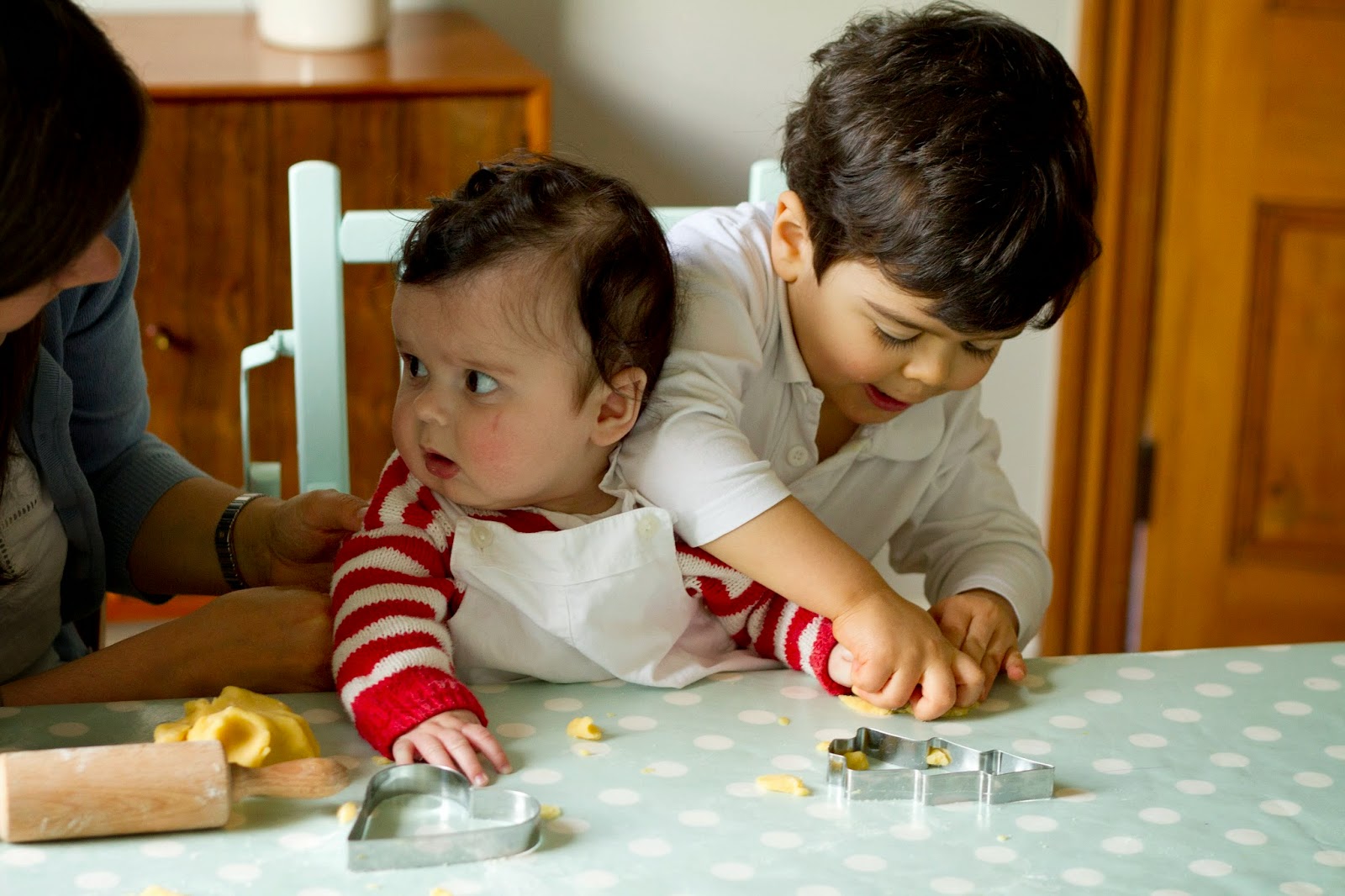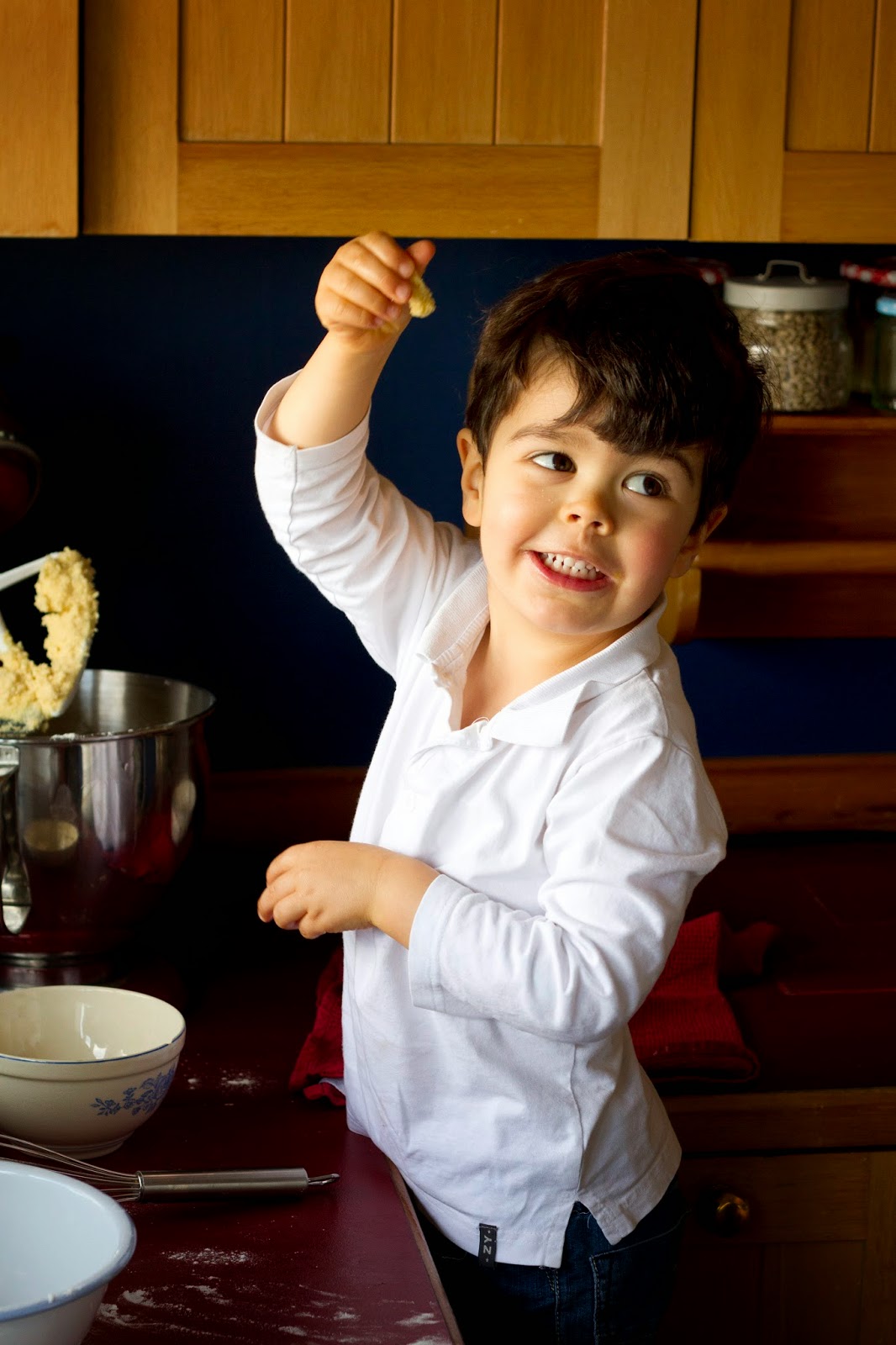 When the dough is well risen (ideally it should have doubled in size**), knead it lightly and shape it into a ball (or several***), put it on a greased baking tray [or one covered in greaseproof paper] and, using your fingers, open a hole in the middle. Hide a dried broad bean+ and a small gift in the dough. Cover the cake with a cloth and allow to rise for another hour.