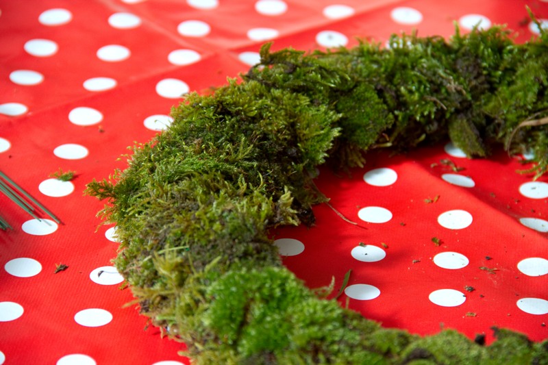 4. Cubra toda a superfície da coroa de musgo, dando uma segunda volta se necessário.