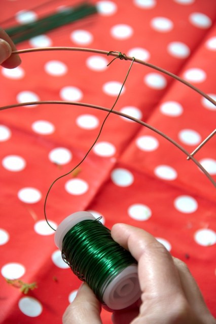 2. Wrap the fine wire around the outer circle of the wreath base.